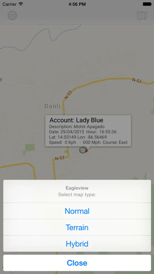 - Localización exacta del vehículo en una fotografía de google earths acompañado de un mapa cartográfico y otra opción de verlo en google earths totalmente referenciado a nivel nacional.