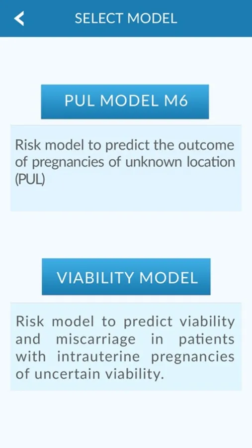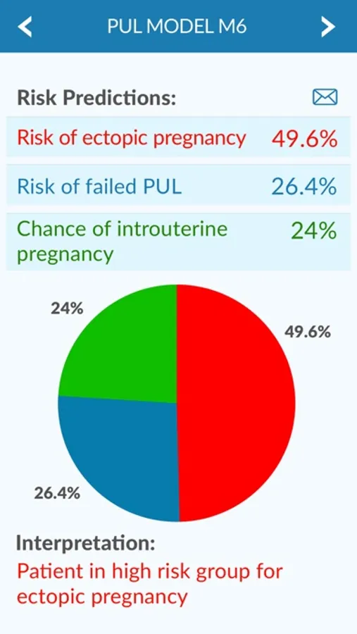 The APP also includes a model based on measurements of serum hCG and progesterone that predicts the probable outcome for pregnancies of unknown location (PUL), so clinicians can decide if they are at low of high risk of complications in order to arrange appropriate follow up (Van Calster, Bobdiwala et al, in preparation).