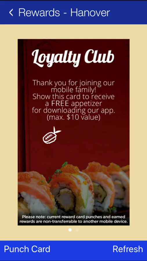 • Mobile loyalty punch card program