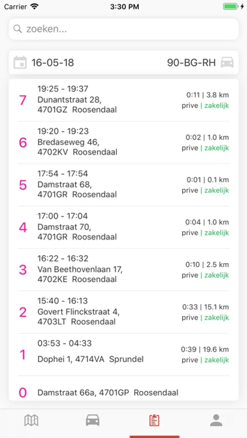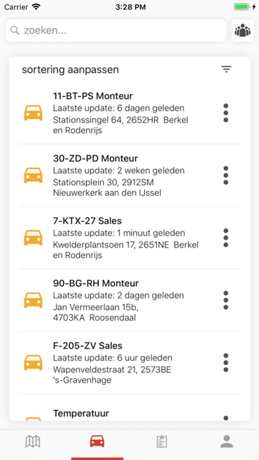 - Voertuigenlijst