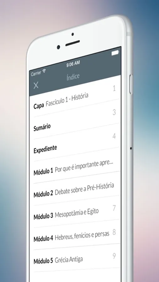 Os sumários, presentes em todos os módulos, permitem o acesso direto aos seus tópicos.