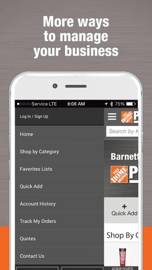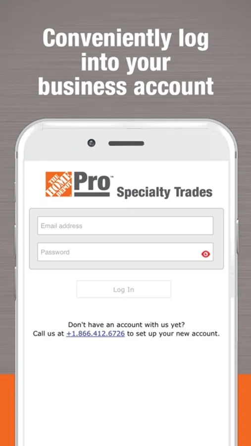 The Home Depot Pro Specialty Trades mobile app is designed to ensure you are able to quickly and easily order what you need to keep your business moving. Simply use your email address and password for your online Home Depot Pro Institutional account to get started. Don't have online access? Visit us at eBarnett.com from a desktop computer to register.