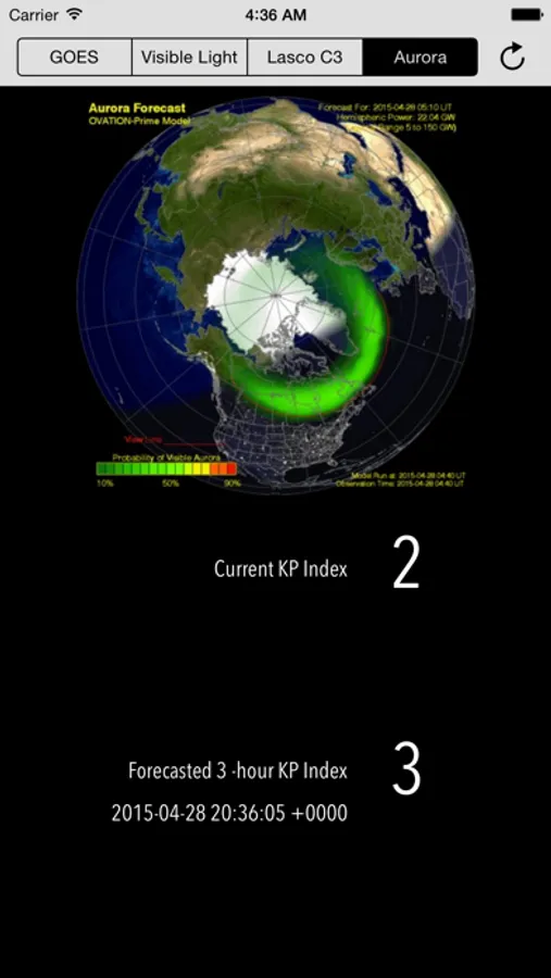 The Solar Sphere provides current value of Kp-index derived from the NOAA Space Weather Prediction Center using data from multiple ground-based magnetometers.