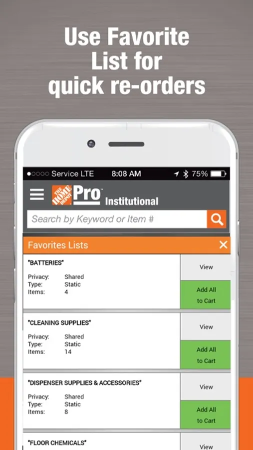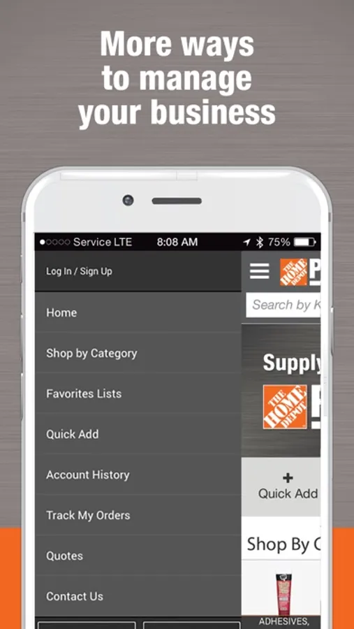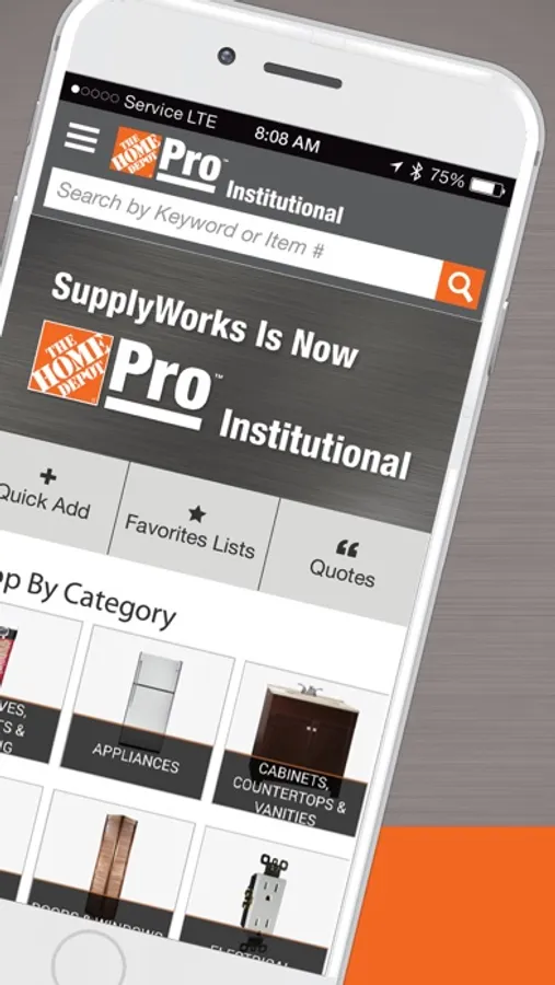 The Home Depot Pro Institutional mobile app is designed to ensure you are able to quickly and easily order what you need to keep your business moving. Simply use your email address and password for your online Home Depot Pro Institutional account to get started. Don't have online access? Visit us at Supplyworks.com from a desktop computer to register.