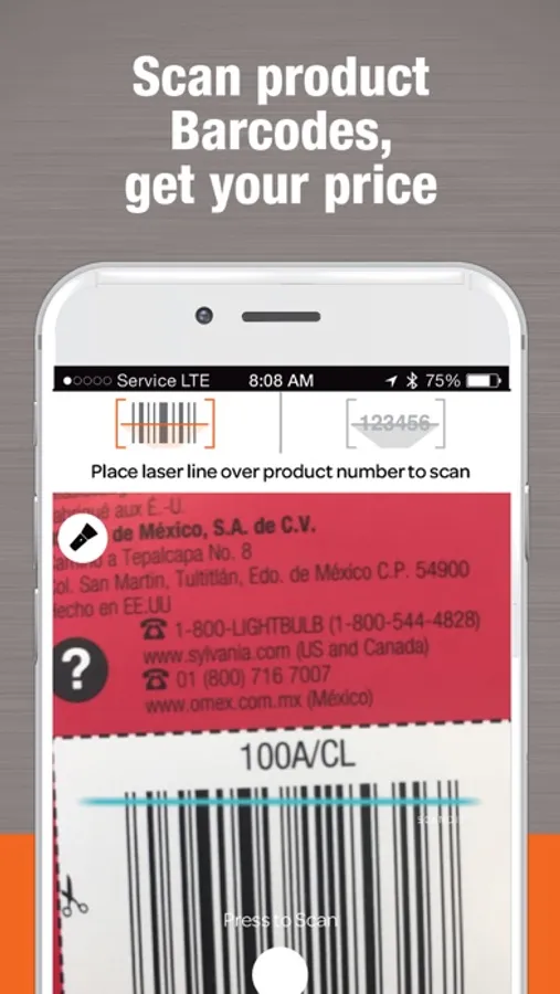 Step 2: Place blue line over bar code and the app will automatically scan