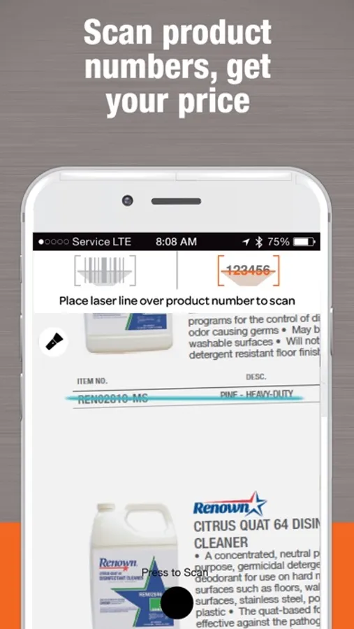 Need to find specific cleaning supplies? Or maybe you need office supplies or need to replenish equipment? Use our convenient bar code scanner to find products you need from our catalogs, brochures or bin labels. View YOUR price for the product, view product availability, email product information and easily purchase products directly from the app!