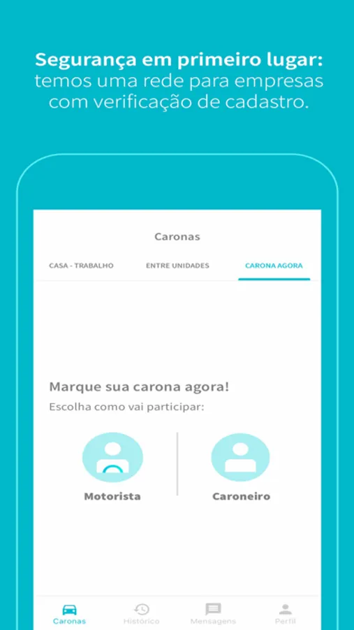 Tudo com segurança através da validação da sua empresa e praticidade com as melhores sugestões de rotas e caronas disponíveis automaticamente em poucos segundos.