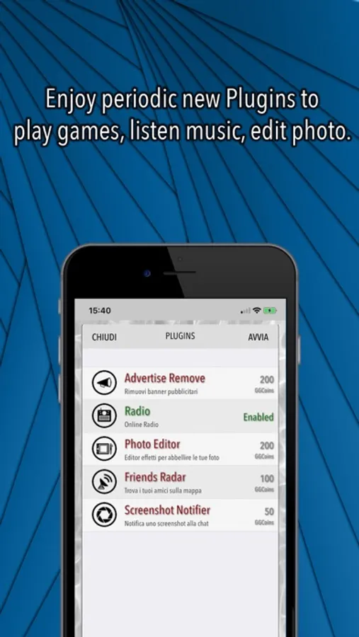 - Plugins where to edit photo, listen music and much more