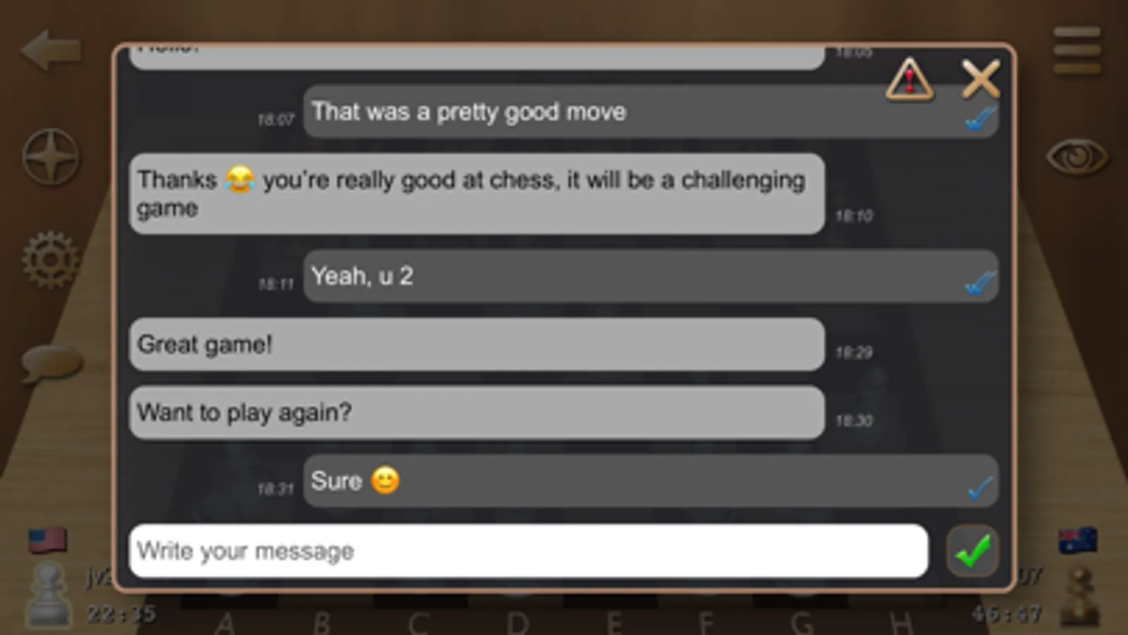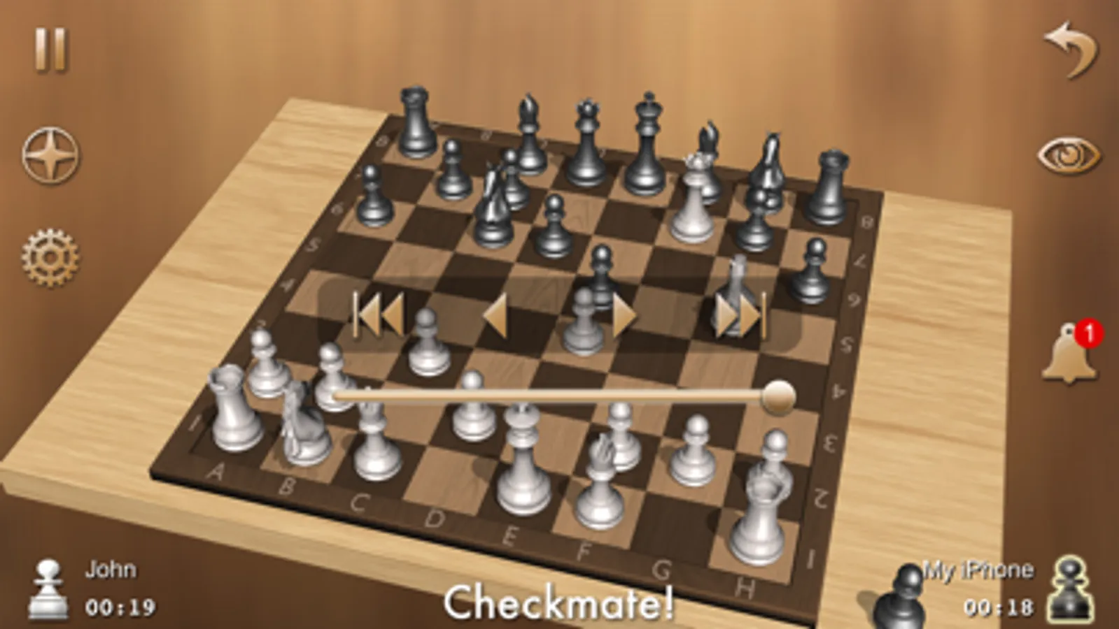 • REDO function if you missed the opponent’s move. Just press EYE button and Chess Prime will show you the last opponent’s move