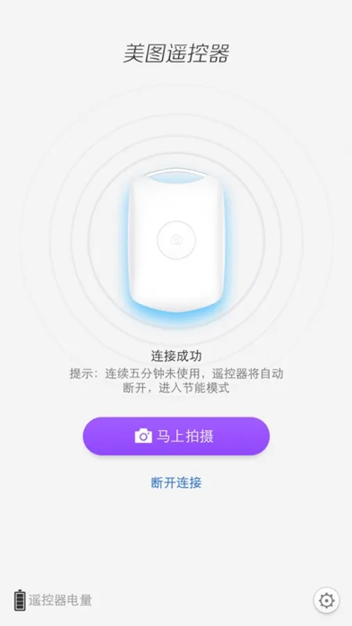 美图遥控器设备首次与手机连接时,您所需做的工作只是打开美图遥控器App,并单击以激活美图遥控器设备,待连接成功后,您就可以使用美图遥控器来拍照和拍视频。