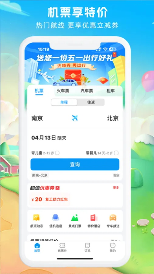 【国内机票】国内机票,底价优惠袭来,往返立减20;