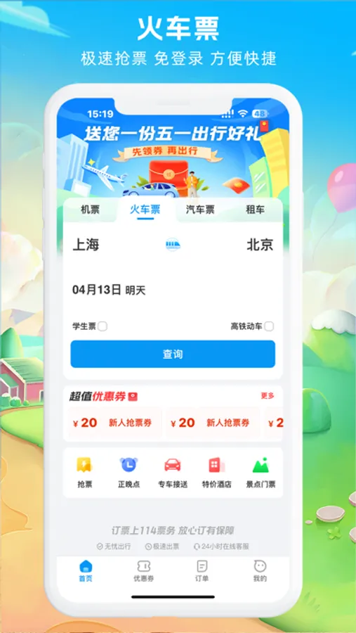 【火车票】火车票订票,抢票,支持12306网站购票;