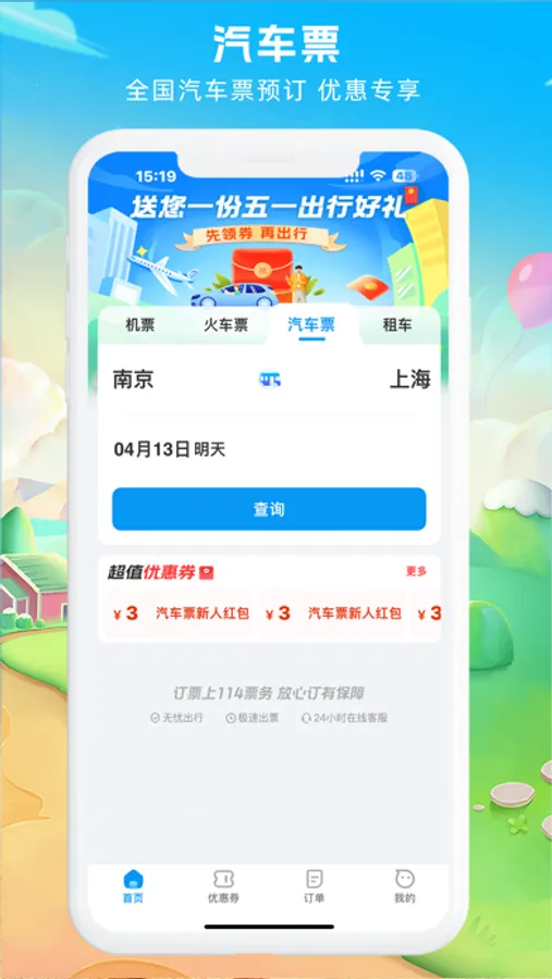 【汽车票】支持全国联网汽车票订票,网上订票车站自取;