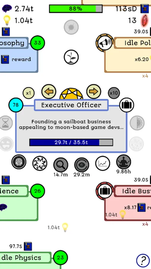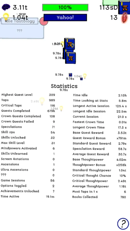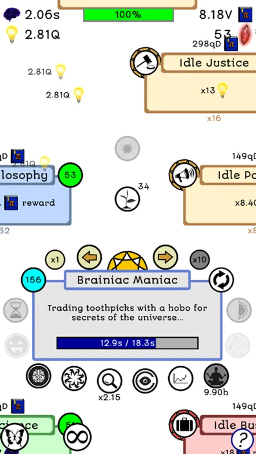 Sit back and relax as you idle your way through Brain Quests, earning Knowledge Points to upgrade your Areas of Expertise, Brainpower, Thoughtpower, and Mindpowers! But be warned! Difficult challenges await, and there is no guarantee of success...
