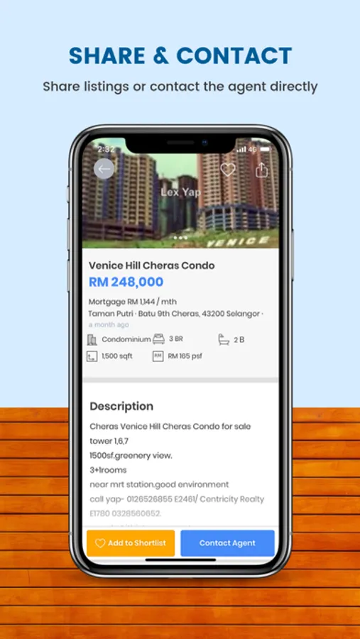 • Contact agent with one click by calling or sending them a WhatsApp directly
