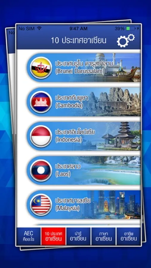 - รายละเอียดประเทศทั้ง 10 ประเทศ เช่น เมืองหลวง ภาษาที่ใช้ ประชากร ศาสนาที่นับถือ เป็นต้น
