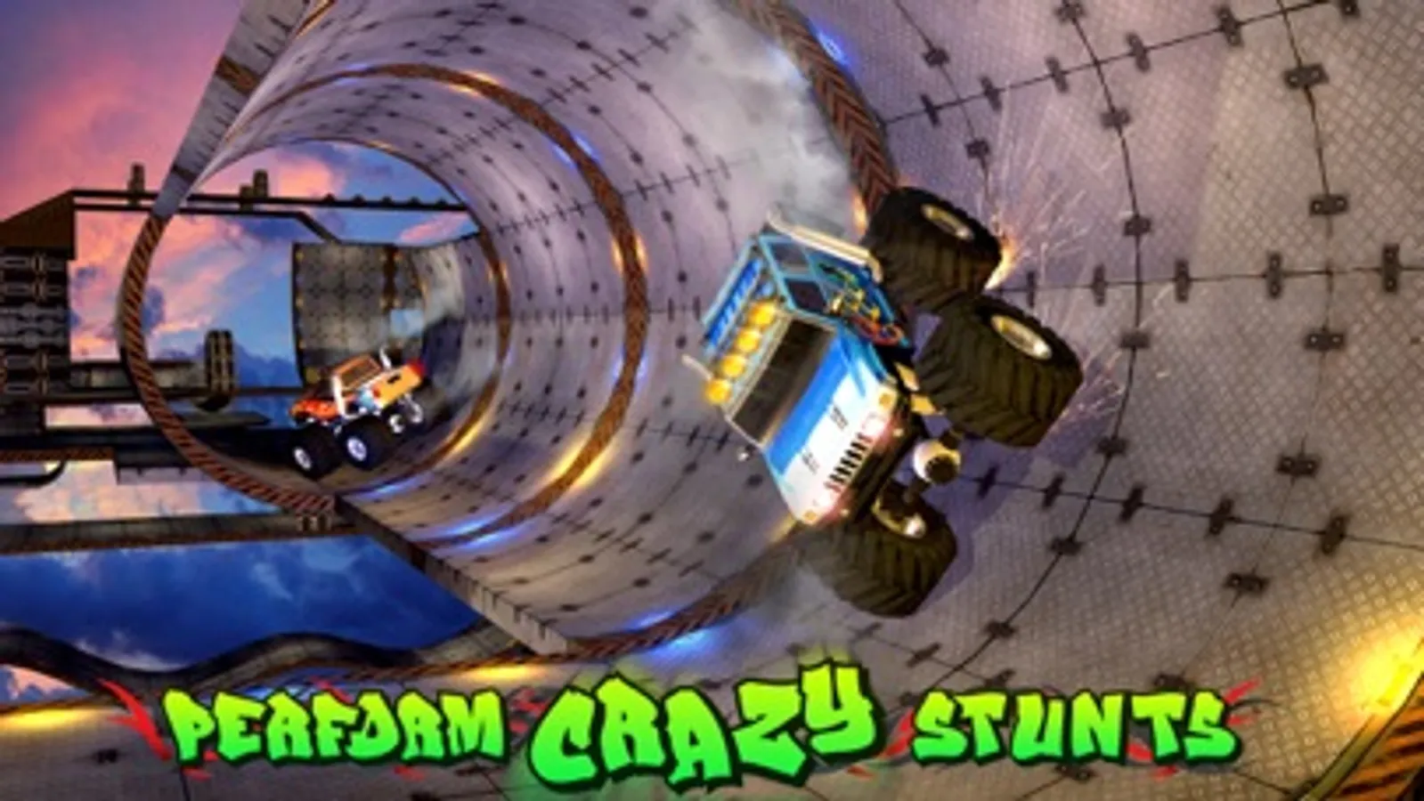 Have you ever dreamt of driving a Monster Truck? Get behind the wheels of these massive vehicles, and perform gut wrenching stunts! Spin around in the monster trucks and become the stunt champion. Jump over thrilling obstacles and speed through terrifying loops! This new stunt game is going to blow your mind right off the race track! Get set for loads of adventures and tons of exciting challenges!