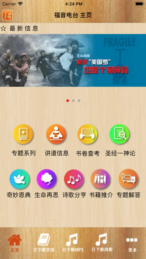 感谢雅伟天父! ,"福音电台" 是一个分享圣经教导、讲道信息、生命见证、诗歌、福音动画等福音资讯的应用程式。用户通过此应用程式可在互联网上参阅各种福音资讯,或下载到本机以作储存,亦可在此应用程式通过各社交平台与人分享。