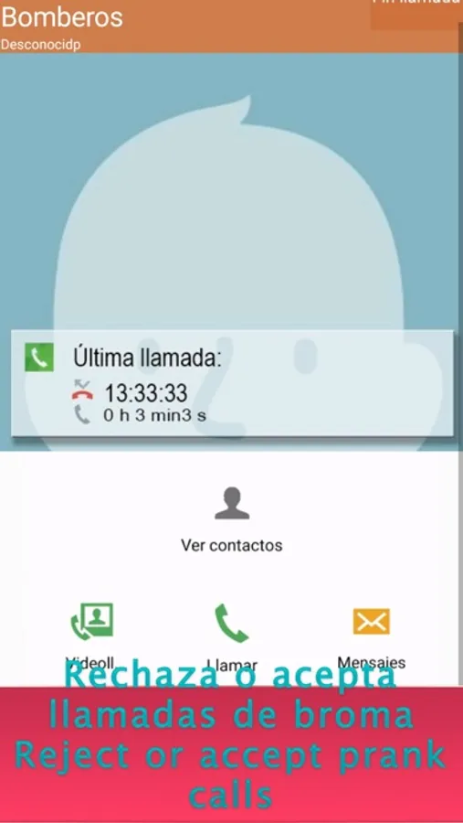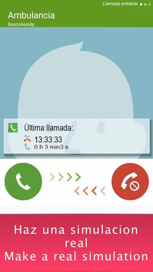 Evita arrastrar el dedo, acepta PULSANDO en el botón verde, esto te llevará a una supuesta conversación de 1 minuto. Rechaza la llamada PULSANDO en el botón rojo, esto simularía el final de la conversación.