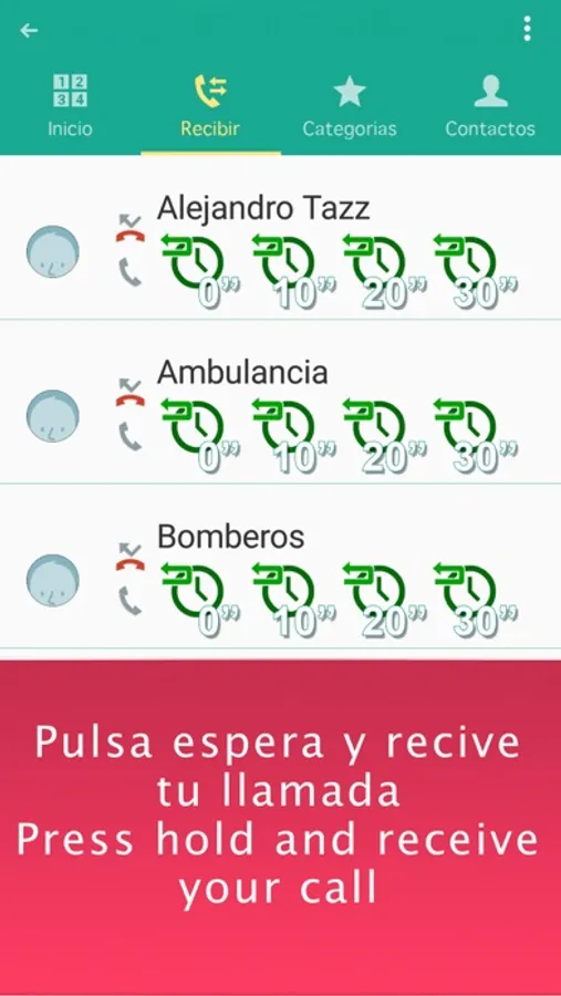 La acción de recibir la llamada, puedes programar que suene el teléfono en 10 segundos 20, 30 o hacerlo sonar inmediatamente pulsando 0 segundos.