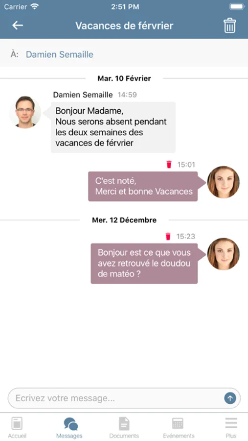 - Envoyer des messages aux professionnels de la crèche via une messagerie dédiée