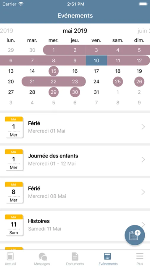 - Accéder au calendrier de la crèche pour retrouver les temps forts