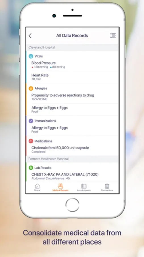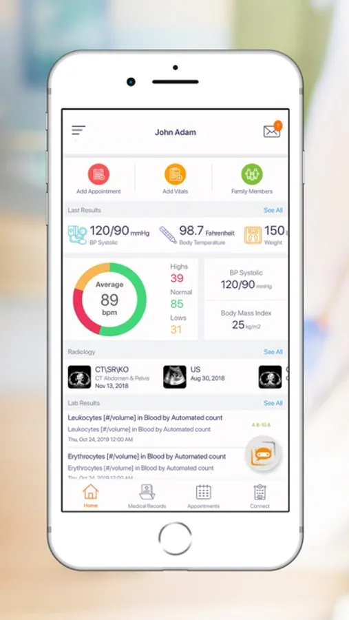 The app allows patients to securely access their medical data including radiology images, lab, allergy, medications, dental, wearables, and clinical reports from different providers with the ability to download, archive, and share using the most advanced mobile computing technology.