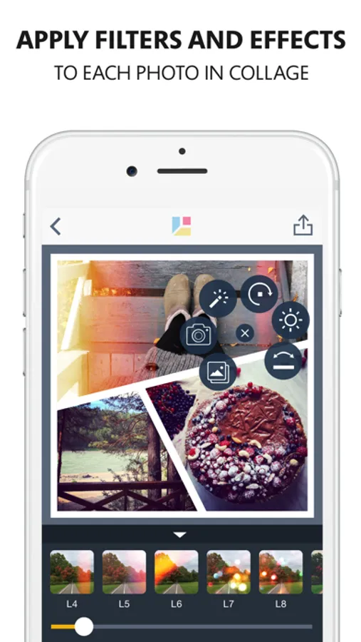 - It’s easy to change photos inside collage: just press and hold the photo to swap it with other photo;