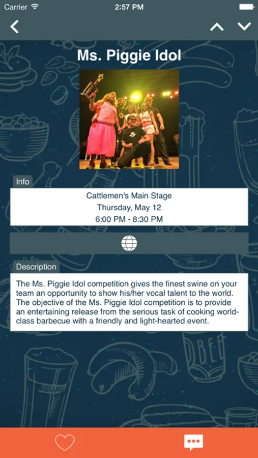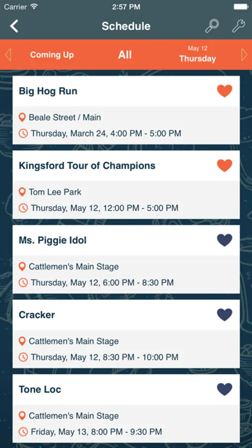 Memphis in May's World Championship Barbecue Cooking Contest is May 12-14, 2016 at Tom Lee Park. Every year, hundreds of teams compete for over $110,000 in prizes and supreme bragging rights. Teams adorn their areas with elaborate decoration, trophies attesting to their boasting rights, and as one can imagine, clever and creative team names. App features include: