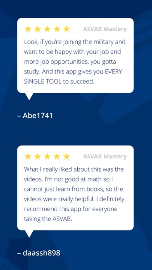 Whether you're aiming for the Army, Navy, Air Force, Marines, Space Force or Coast Guard, our comprehensive study app is designed to help you conquer every aspect of the ASVAB test. Trusted by 1.1 million aspiring recruits, ASVAB Mastery is all you need to ensure you get the military career of your dreams.