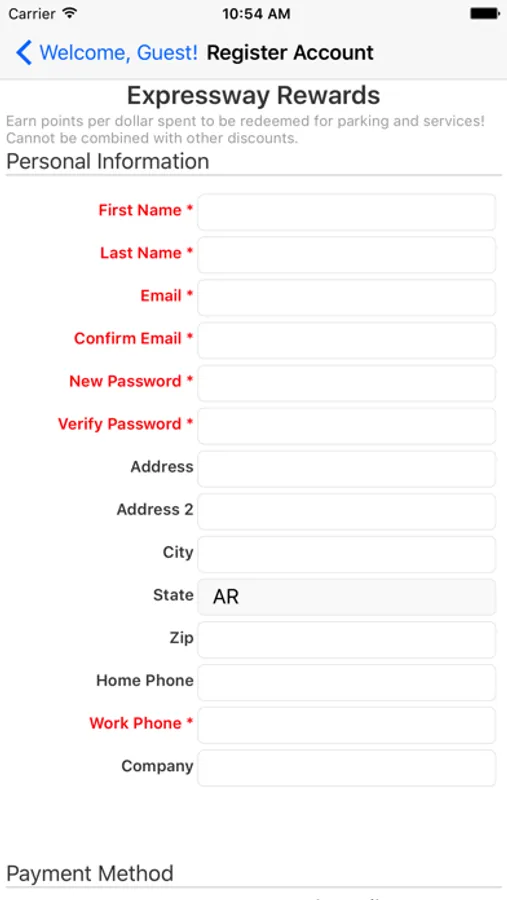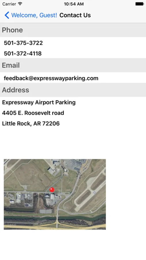 Customer portal for access to Expressway Airport Parking located at Clinton National Airport in Little Rock, AR, providing: