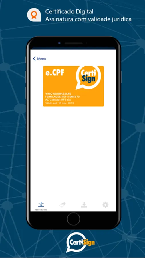 O mobileID Certisign é um serviço de Identificação Forte que por meio do Certificado Digital ICP-Brasil permite a autenticação do usuário e a assinatura de documentos no meio eletrônico, diretamente de dispositivos móveis, com validade jurídica.