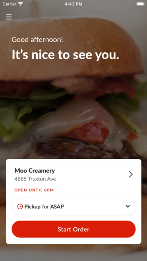 With the Moo Creamery mobile app, ordering food has never been easier. Whether you're looking for a quick snack or a full meal, we've got you covered. Just browse our easy-to-use menu, customize it how you'd like, place your order using our secure payment system, and sit back! A push notification will alert you when your order will be ready.