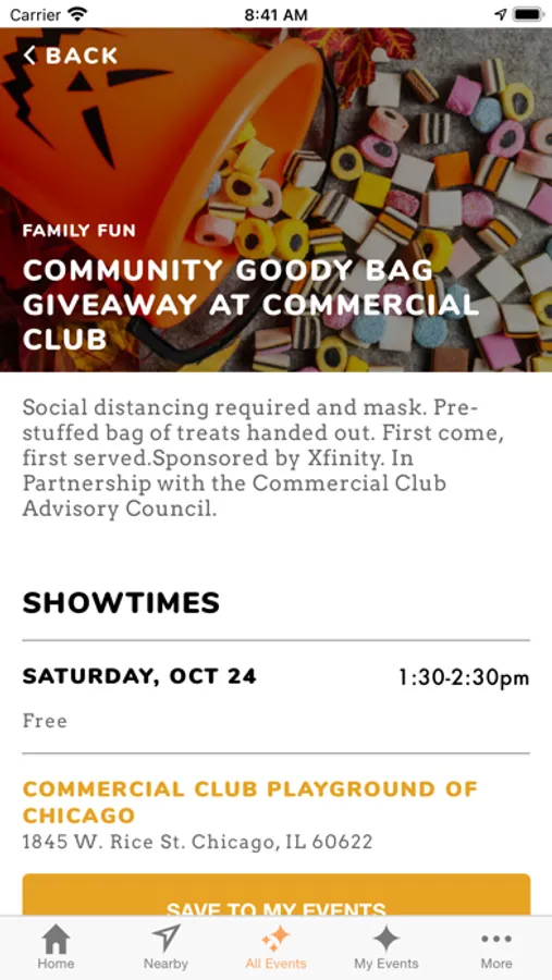 • Save favorite events to your My Events page and quickly see your favorite events all in one place
