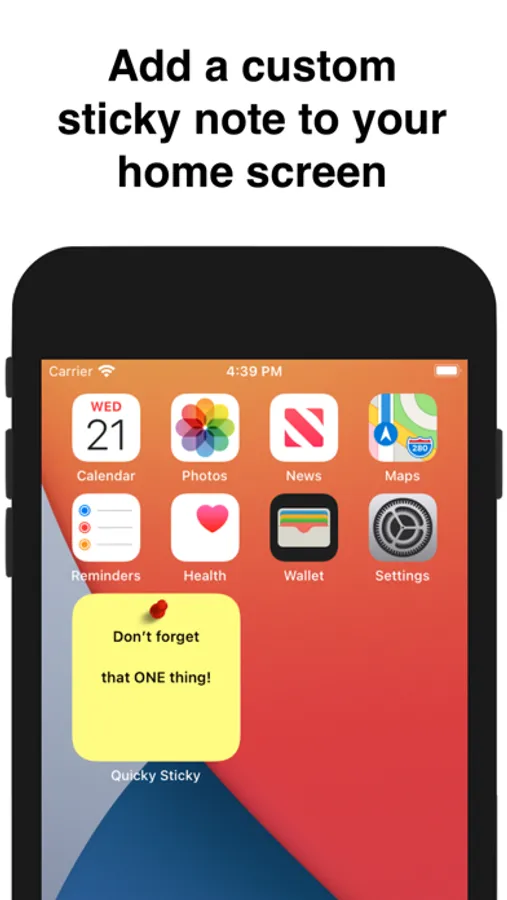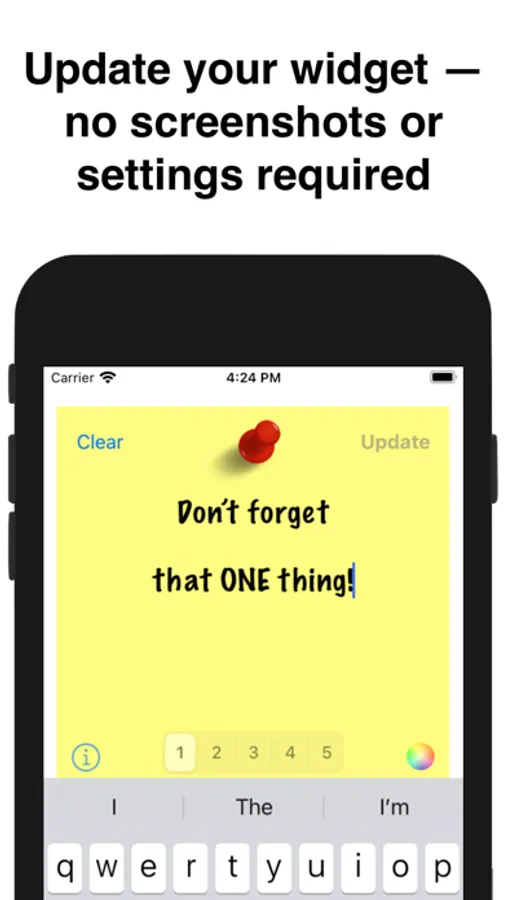 Create a sticky note reminder for your home screen with one tap. No images or settings required.