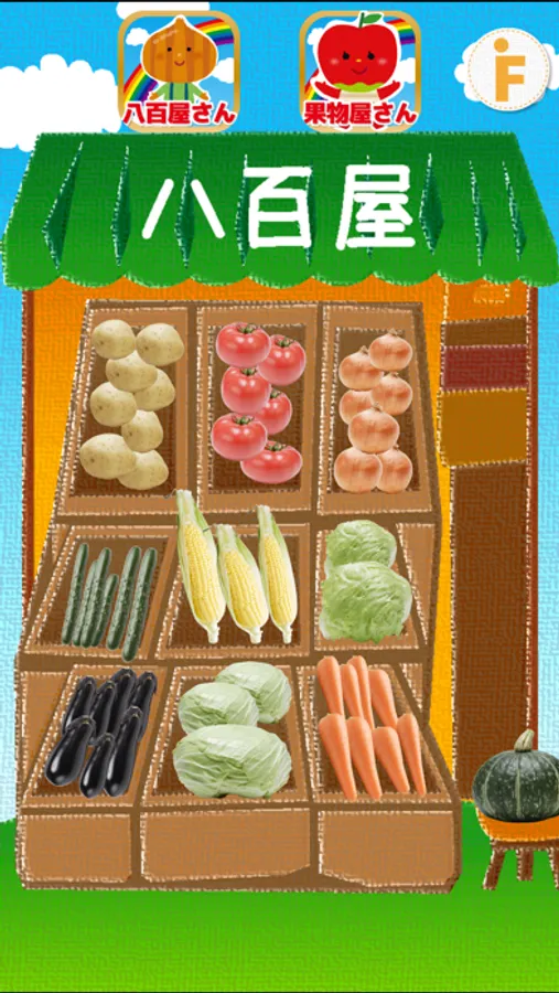 八百屋さんと果物屋さん気分を味わいながら楽しく野菜と果物の名前が覚えられます。