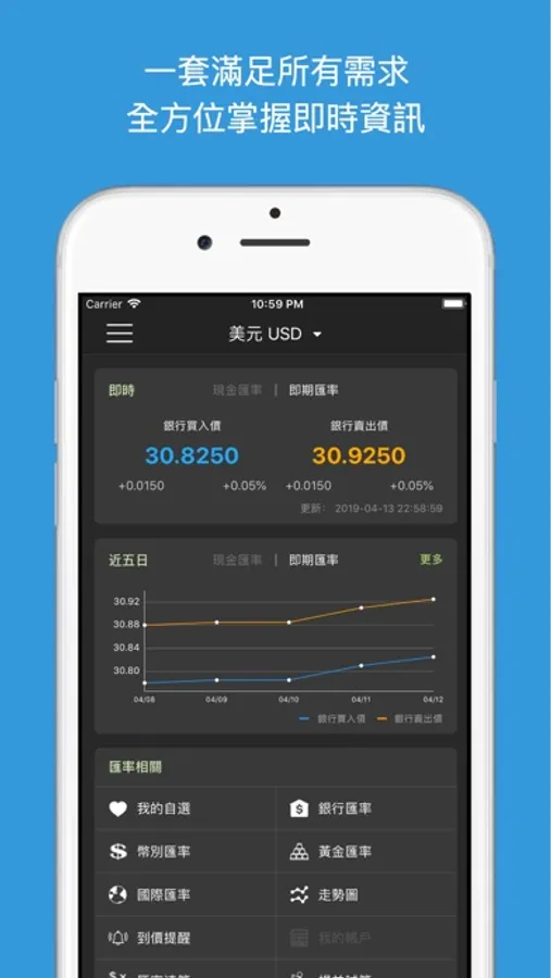■全台首創將【到價提醒】融入「匯率」中,並提供『操作簡單、方便』的使用介面,更以實用、便利為出發點的App