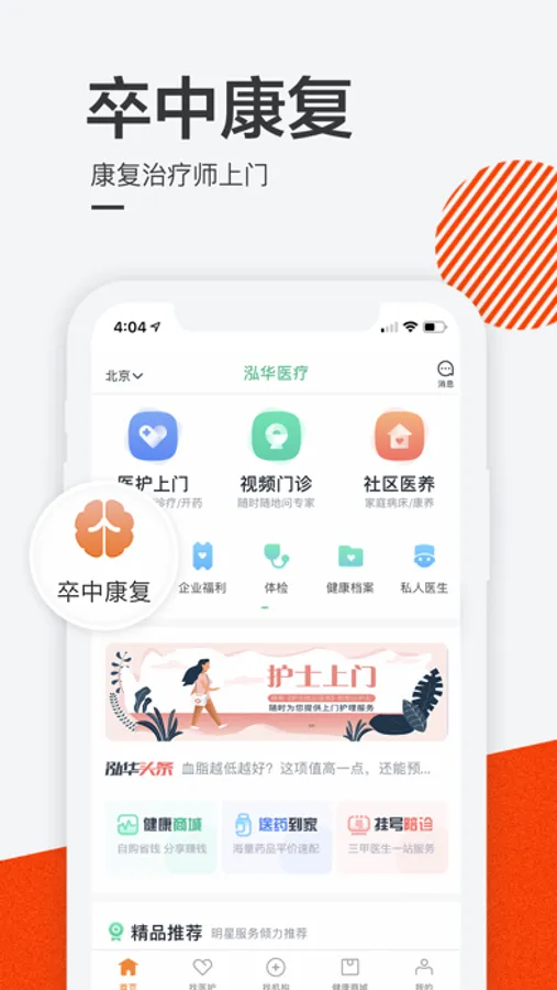 泓华的医护上门(医生上门、护士上门)及送药到家服务已经遍布全国330多个城市2300个区县,医护上门、护工服务和24小时远程视频问诊结合,提供家庭病床、巡诊、居家康复护理、送药到家、老年健康定期巡护等服务,可大大提高患者康复效果和老人生活质量。
