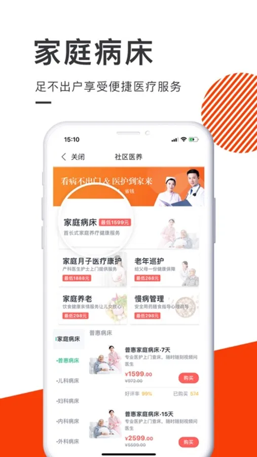 责任医师上门查房、专业护士上门服务、随时随刻视频问诊、随时查看病例档案,享受与住院同等服务