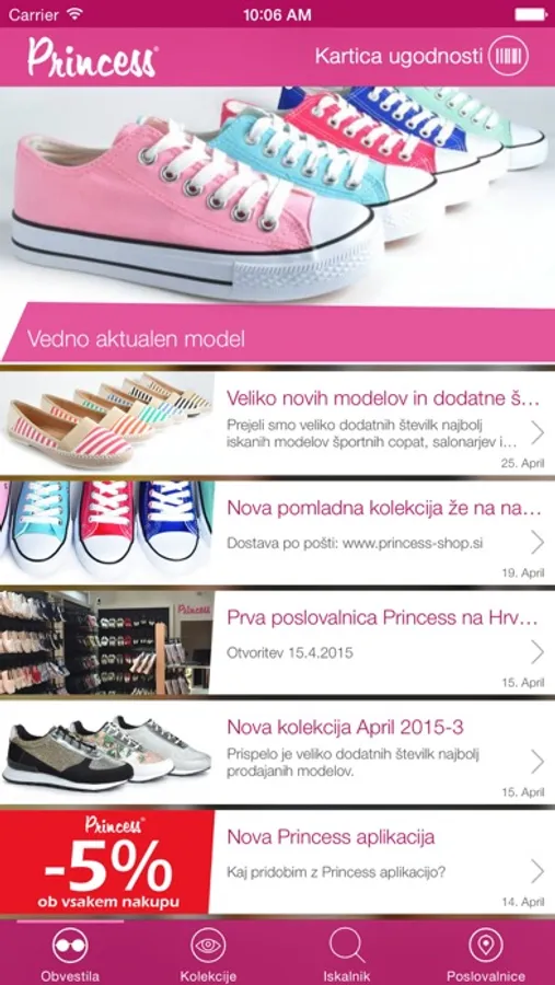 Vsak imetnik Princess aplikacije ima stalen 5% popust ob nakupu v naših poslovalnicah.