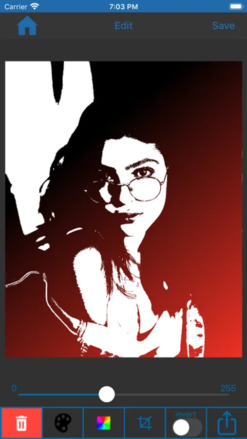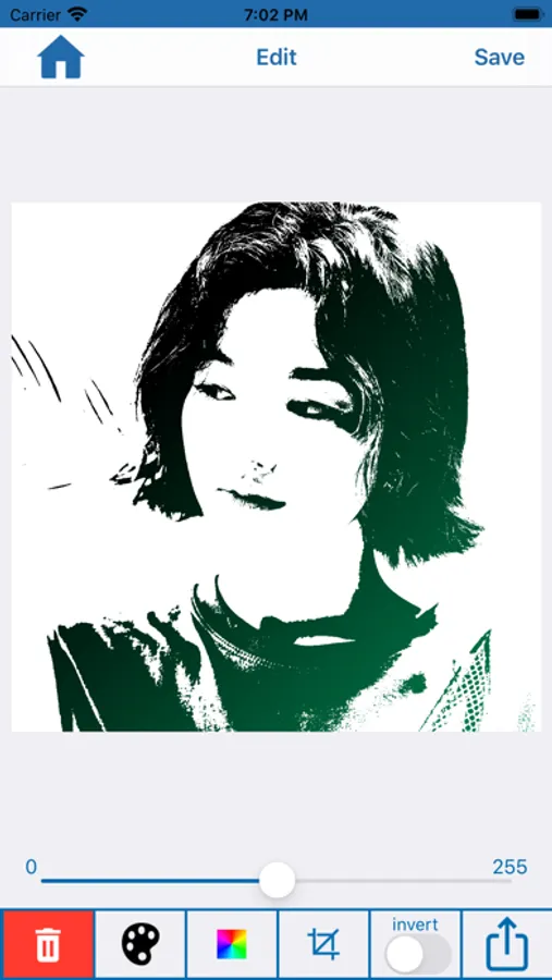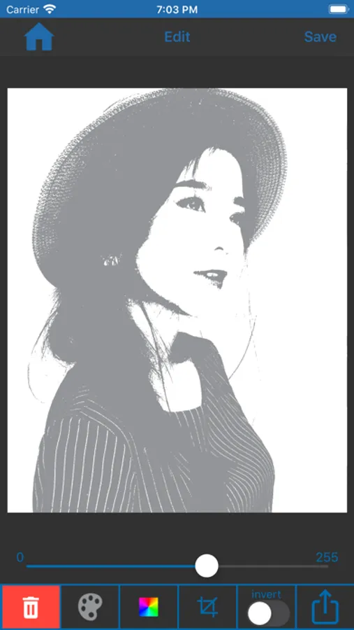 "Fx Stencil Pro" lets you make a stencil from photo you takes or from your photo album.Very simple and quick.You can edit, share on facebook, save to your album or mail it to your friends and family.