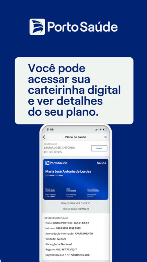 → Carteirinha digital: Acesse rapidamente informações sobre o seu plano de saúde e de seus dependentes.