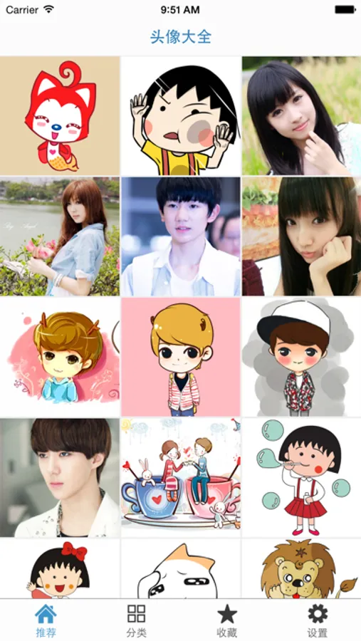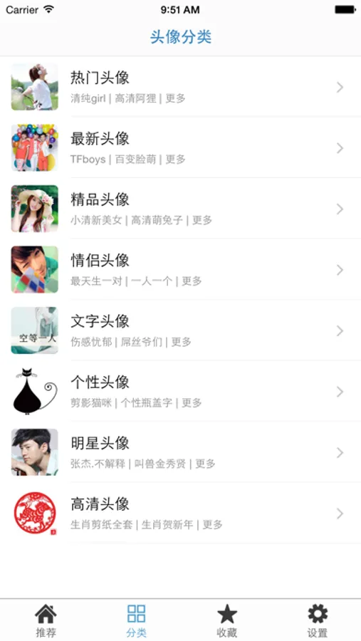 2.涵盖高清、个性、文字、可爱、动漫、明星等全部热门头像类,定期大量更新!