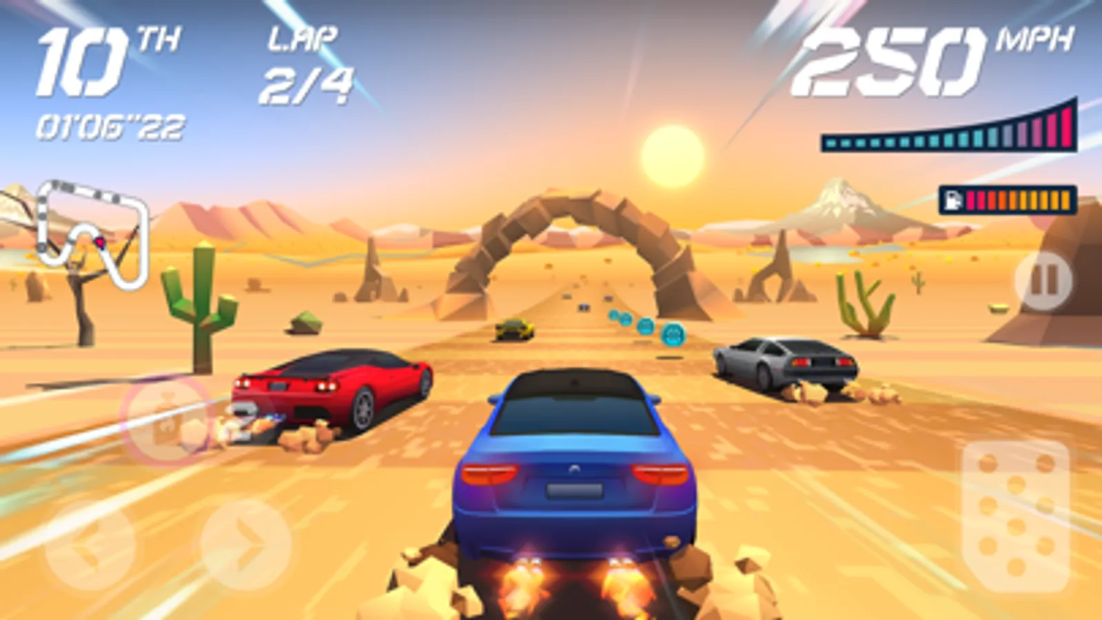 Horizon Chase presents Barry Leitch, the musician behind the soundtracks of classic arcade racing games. As you play the game, you'll be hypnotized by his charming tunes that compliment the graphical ecstasy of each horizon.