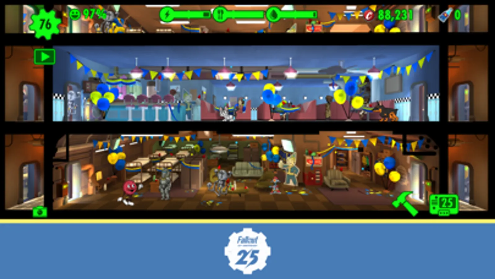 A well-run Vault requires a variety of Dwellers with a mix of skills. Build a Radio Room to attract new Dwellers. Or, take an active role in their personal lives; play matchmaker and watch the sparks fly!