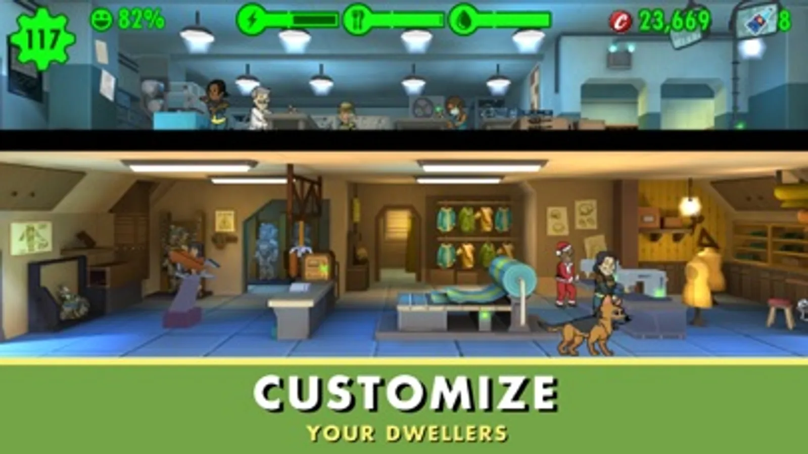 Get to know your Dwellers and lead them to happiness. Find their ideal jobs and watch them flourish. Provide them with outfits, weapons, and training to improve their abilities.