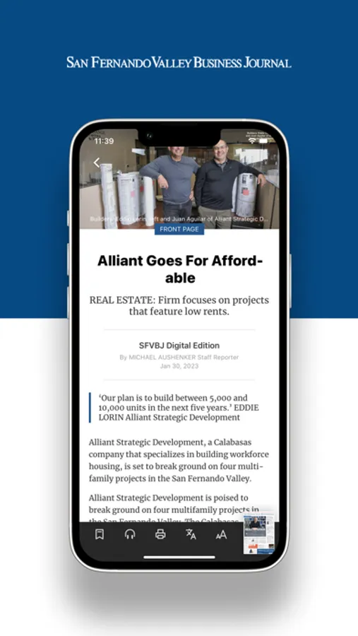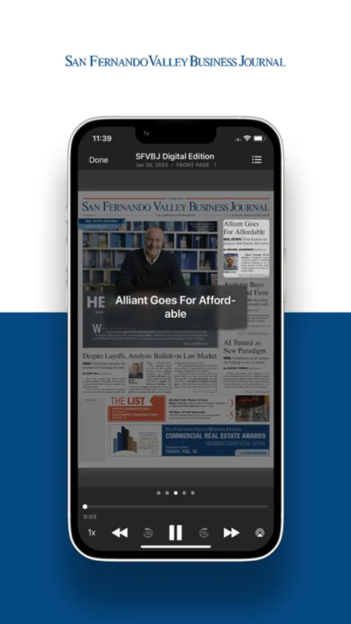 Complete digital replicas of the San Fernando Valley Business Journal’s biweekly print editions, delivered straight to your device. You have the choice to automatically download editions to read at your leisure – anytime, anywhere, even without an internet connection.