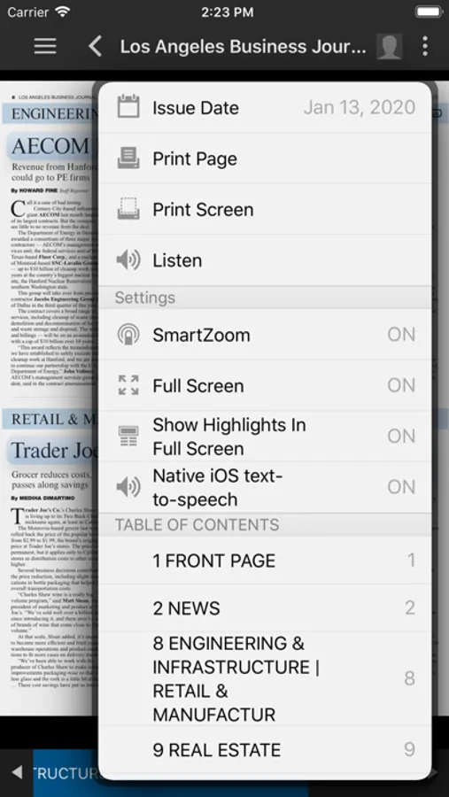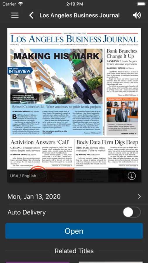 Print subscribers: Access to the app is included with your subscription! Your labusinessjournal.com username and password works with authentication mode. Just click the SIGN IN button when it appears or use “Authorize” under settings at top right.