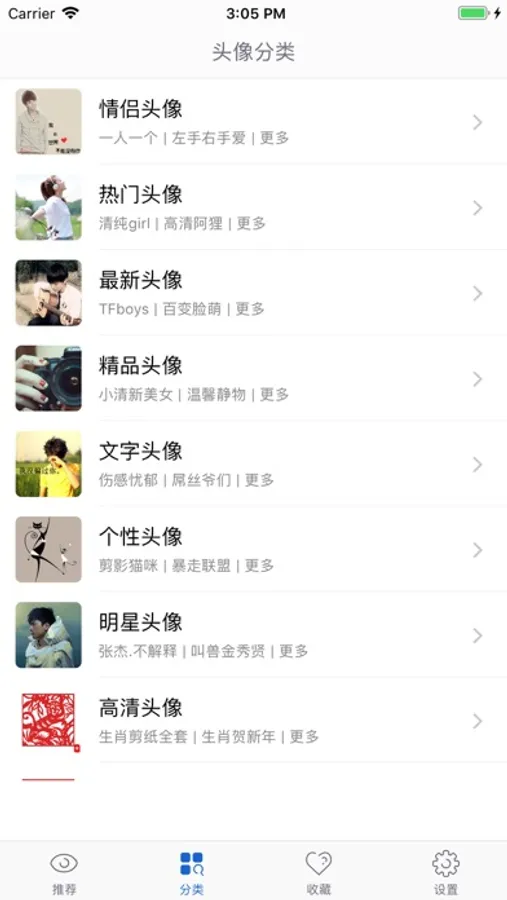 2.涵盖高清、个性、文字、可爱、动漫、明星等全部热门头像类,定期大量更新!