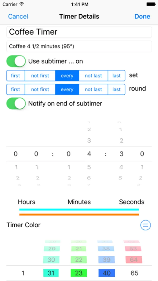 OmniTimer is a general purpose timer. You can create as many own timers with OmniTimer as you want. A timer can contain several sub-timer, with which you can set different time sequences, e.g. such as in a Tabata workout timer with 20 seconds workout and 10 seconds recovery, or as in the Qi Gong meditation, where each of the five elements ( wood, fire, earth, metal and water ) is taken for a certain period of time. Furthermore, you can freely define the number of repetitions ( laps and sets ). Where the sequence, sounds, colors, images, flash light function and duration of the sub-timer can change at each lap and set. With the flash light function - whose color can be individually set - OmniTimer is also perfect for the deaf. The self-created timer can be sent via e-mail to other users of OmniTimer.